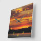 Decorate a living space with this stylish wall clock with yellow numerals and features a scenic photo image of a dramatic, orange sunset over water. Select your clock size and style. Use to decorate a living room, dining room, kitchen, bedroom, or any other room.