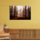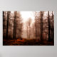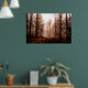 Dramatic red foggy winter snowless forest poster