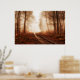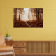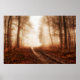 Dramatic red foggy winter snowless forest poster