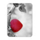 A creative and dramatic black and white photo of an apple tree branch with a bright red heart shaped apple hanging down. Artistic and striking composition and this red apple really pops against the subtle black and white background. Natures magic at work.