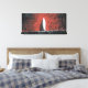 A chilling and atmospheric piece of dramatic canvas art perfect for long, horizontal wall spaces. The composition features a solitary white, draped figure (like a ghost or apparition) standing directly against a bold red brick wall. Dark, painterly shadows and moody textures enhance the cinematic, haunting aesthetic. This unique piece of horror or dark surrealism is ideal for bedrooms, gaming rooms, or any space needing a dark, narrative-driven focal point.