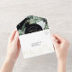 This elegant wedding invitation with tear away RSVP card combines stunning watercolor images of white rose and green fern bouquets with modern typography. Your gold and white text is within a black cathedral block, and the floral images with soft green embellishment are around it. A smattering of subtle gold confetti adds a bit of sparkle to the dramatic black background. The back flap holds your own special photograph. The RSVP bottom has plenty of room for your own text, and is easy to customize. We are always happy to help, so feel free to message us if you need assistance. If you're having a buffet reception, we can work with you to re-design the RSVP portion, so don't hesitate to ask!
