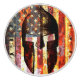 Le drapeau américain et le bouton et le tiroir de porte spartiates de casque tirent.