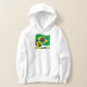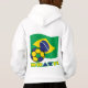 Le mot BRÉSIL, aux couleurs du drapeau brésilien, apparaît au bas de l'image. Ci-dessus, une boule de football, également aux couleurs du drapeau. Le lui-même vole au-dessus et derrière tout. Une façon amusante de montrer son soutien à TEAM BRAZIL lors des rencontres internationales et mondiales de football.