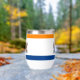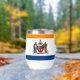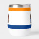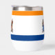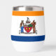Paruline à vin thermique avec le drapeau d'Albany, New York. Un drapeau orange, blanc et bleu avec l'emblème de la ville au centre
