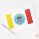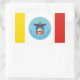 Sticker avec drapeau de la ville de Columbus, Ohio; drapeau avec trois bandes verticales de jaune, blanc et rouge avec sceau bleu de la ville avec aigle chauve dans le centre
