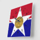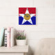 Horloge avec drapeau de la ville de Dallas, Texas; drapeau avec bandes horizontales rouge et bleu avec sceau de la ville à l'intérieur d'une étoile blanche dans le centre