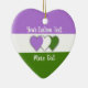 Un ornement de Noël en céramique en forme de coeur avec le drapeau de la fierté de la genderqueer avec de petits coeurs au centre du design. drapeau pourpre, blanc et vert du mouvement de la fierté queer ; avec un champ de texte modifiable pour votre nom ou message ; une belle façon de décorer votre sapin de Noël : D