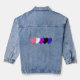 Veste Denim avec le drapeau de la fierté de la fluidité du genre avec peu de coeurs au centre du design. Un drapeau rose, blanc, magenta, noir et violet du mouvement de fierté de la fluidité du genre ; avec un champ de texte modifiable pour votre nom ou message