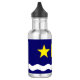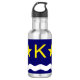 Bouteille d'eau design avec drapeau de Kinshasa, capitale de la République Démocratique du Congo, drapeau bleu à vague blanche, deux étoiles dorées et lettre "K" au centre