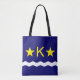 Sac fourre-tout avec design avec drapeau de Kinshasa, capitale de la République Démocratique du Congo, drapeau bleu avec vague blanche, deux étoiles dorées et lettre "K" au centre