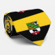 Cravate avec drapeau de variante de Saxe-Anhalt; conception avec deux bandes horizontales de jaune (or) et de noir, et avec armoiries de l’État au centre