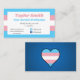 Cartes de visite simples avec le motif de la fierté transgenre, drapeau de la fierté trans dans l'arrière - plan, et un coeur avec les couleurs de la fierté transgenre à l'avant; avec des icônes de médias sociaux personnalisables où vous pouvez ajouter votre nom d'utilisateur pour Facebook et Twitter