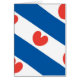 Drapeau de la Frise, une province de la Pays-Bas. Il se compose de bandes diagonales bleues et blanches; dans les bandes blanches sont pompeblêden rouge, feuilles du nénuphar jaune, qui peut rappeler un des coeurs, mais selon les instructions officielles "ne doit pas être en forme de coeur".