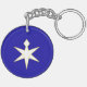 Porte - clé avec un design avec le drapeau de la préfecture de Chiba au Japon (千 葉 県, Chiba-ken), un drapeau bleu avec un symbole blanc et jaune