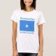 Sur l'avant de cette chemise un titre et un slogan editable accompagne le drapeau somalien de son étoile blanche sur un arrière - plan bleu-clair. Le dos montre une carte détaillée de la Somalie.