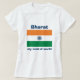 Sur l'avant de cette chemise un titre et un slogan editable accompagne le drapeau indien de son motif circulaire bleu sur le blanc entre les bandes oranges et vertes. Le dos montre une carte détaillée de l'Inde.