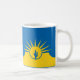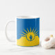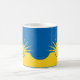 Mug avec drapeau de la ville Mesa, Arizona; drapeau jaune et bleu avec illustrations stylisées du désert, cactus et soleil levant