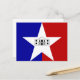 Carte postale avec le drapeau de San Antonio, Texas. Un drapeau bleu et rouge avec une étoile blanche et une illustration d'Alamo au milieu