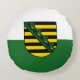 Coussin rond avec variante du drapeau de Saxe; design avec deux bandes horizontales de vert et blanc, et avec armoiries de l’Etat au centre