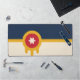 Mat de bureau avec un design avec le drapeau de Tulsa, Oklahoma. Un drapeau beige et bleu marine avec un bouclier or Osage contenant un cercle rouge et une étoile beige à six branches