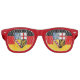 Lunettes de soleil avec drapeau de Sarre; design avec tricolore horizontal de noir, rouge et jaune (or), avec armoiries de l'état au centre