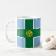 Mug avec design avec un drapeau du comté historique de Derbyshire, en Angleterre, Grande-Bretagne; drapeau bleu avec une croix verte et un Tudor rose en or dans le centre