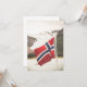 Photo du drapeau norvégien à l'arrière d'un bateau. Lieu : Holandsfjorden, avec Engabreen, une partie du glacier Svartiven dans l'arrière - plan. Photo © Sebastian Worm.