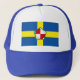 Casquette avec design avec un drapeau du comté historique de Pembrokeshire, au Pays de Galles, Grande-Bretagne; drapeau bleu azur avec croix jaune et rose Tudor blanc dans le centre