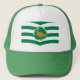 Casquette avec design avec un drapeau du comté historique de Wiltshire, en Angleterre, Grande-Bretagne; drapeau blanc et vert avec des rayures angulaires et grand bustard dans le centre