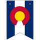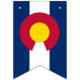 Le drapeau de l'état du Colorado se compose de trois rayures horizontales de largeur égale ; les rayures de dessus et de bas sont bleues, et le blanc moyen de rayure. Sur ces rayures repose un rouge circulaire "C", rempli de disque d'or. Le "c" rouge rempli de disque d'or représente également des couleurs de drapeau espagnol. Le bleu est censé pour représenter les cieux, l'or représente la fièvre de l'or vers la fin des 1800s, le blanc représente les montagnes couronnées de neige, et le rouge représente la terre colorée vermeille.