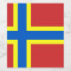 Étiquette de vin avec un drapeau du comté historique d'Orkney, en Ecosse, Grande-Bretagne; drapeau rouge avec croix nordique bleue et jaune