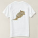 Un titre et un slogan editable accompagne l'étoile dirigée par cinq verts sur un arrière - plan rouge du drapeau marocain sur l'avant de ce T-shirt. Le dos montre une carte détaillée du Maroc.