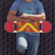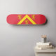 Planche à roulettes avec design avec un drapeau du comté historique d'Anglesey, au Pays de Galles, Grande-Bretagne; drapeau rouge avec chevron jaune et trois lions; les bras attribués de Hwfa ap Cynddelw, l'insigne traditionnel du comté