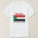 Un titre et un slogan editable accompagne la triangle verte des bandes rouges, blanches et noires à la droite du drapeau soudanais sur l'avant de ce T-shirt. Le dos montre une carte détaillée du Soudan.