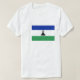 Le drapeau national actuel du Lesotho, adopté le 4 octobre 2006, comporte un tricolore bleu, blanc, et vert horizontal avec un mokorotlo noir (un casquette de Basotho) au centre. La conception, présentée pour honorer le quarantième anniversaire de l'indépendance, est, semble-t-il, prévue pour refléter une orientation paisible pour le pays que le premier drapeau du Lesotho a été présenté le 4 octobre 1966, le jour de la pleine indépendance du Lesotho du Royaume-Uni. Elle a comporté un mokorotlo blanc proéminent. Le bleu a représenté le ciel et la pluie, le blanc pour la paix, le vert pour la terre, et le rouge pour la foi. Un nouveau drapeau, conçu par le sergent Retšelisitsoe Matete, [3] a été adopté le 20 janvier 1987, suivant un coup militaire qui a évincé la partie nationale de Basotho après 20 ans dans la puissance. Un bouclier traditionnel brun clair de Basotho avec un assegai (lance) et le knobkierie (club) a remplacé le casquette de Basotho comme emblème primaire. La combinaison de couleurs et le motif ont changé aussi bien, avec un champ blanc triangulaire se tenant pour la paix. La diagonale inférieure a contenu une bande bleue pour la pluie et une triangle verte pour la prospérité.