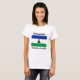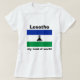 Sur le devant de cette chemise, un titre et un slogan modifiables accompagnent le drapeau basotho avec son symbole noir sur le blanc entre bandes horizontales bleues et vertes. L'arrière affiche une carte détaillée du Lesotho.
