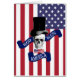 Drôle moderne et fier patriotique design drapeau américain avec un crâne gothique vintage amusant portant le chapeau de style Abraham Lincoln et un rouge blanc et bleu étoiles et rayures étoile américaine drapeau rayé bannière, avec Dieu bénisse l'Amérique texte disant. Fier fièrement de célébrer l'action de grâce ou 4 juillet fête de l'indépendance avec style.