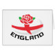L'illustration d'un anglais rouge s'est levée avec le drapeau de l'Angleterre à l'intérieur de la boule de rugby et des mots "Angleterre"