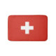 Drapeau suisse | La Suisse traverse le tapis de salle de bain. Décor personnalisé de salle de bain avec drapeau de Suisse. Tapis de salle de bain design et noble. Décor intérieur mignon et accessoire. Décor intérieur patriotique design pour salle de bain élégante. Disponible en petite, moyenne et grande taille. Aussi agréable pour un hôtel moderne, spa ou salon de beauté. Texte personnalisable pour nom, monogramme ou devis. Rouge et blanc.