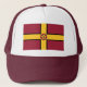 Casquette avec design avec un drapeau du comté historique de Northamptonshire, en Angleterre, Grande-Bretagne; drapeau marron avec une croix d'or et le rose traditionnel du comté dans le centre