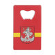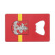 Bouteille Ouverture avec design avec le drapeau de Vilnius, capitale de la Lituanie; drapeau rouge avec bande jaune et armoiries avec deux lions dorés tenant un bouclier au centre