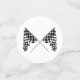 Pack de 60 petits, moyens et grands morceaux de confettis avec une image, de part et d'autre, de drapeaux de course croisés en noir et blanc à damiers sur blanc. Voir étiquette cadeau et papier d'emballage correspondant. Voir l’ensemble de la collection Confetti Fête du Père dans le DECOR | Section Confetti.