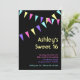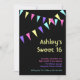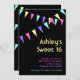 De multiples brins de drapeaux colorés et de style club de danse, font cette invitation pop, pour un Sweet 16. Cette invitation peut être facilement customisée pour un 18ème anniversaire, 21ème anniversaire ou tout autre âge.