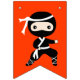 Joyeux drapeau de l'anniversaire pour compléter la prochaine fête d'anniversaire de votre enfant sur le thème du ninja. Il présente de mignons petits ninjas entre les lettres de bonheur anniversaire. Faites de la célébration un événement spécial avec ce design rose noir et blanc. Quels que soient les arts martiaux préférés de votre petit guerrier ninja, vous pouvez rendre la fête mémorable avec cet ensemble unique d'accessoires de fête.