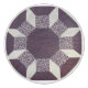 Pattern block in purple and white "spool" quilting pattern. Eight spools rotate around a centre of dark purple. A purple flower print is the "thread" on the spool, as well as the frame for each block.