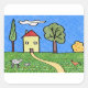 house,country,drawing,cartoon,illustration,infantile,babyish,naïve,cheep,rooster,path,way,flower,tree,bush,field,cloud,sky,blue,green,yellow