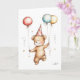 Drawing of Teddy Bear in Birthday Hat with Balloon Card