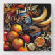 Drawing Stylized Still Life Vase Fruit Square Wall Clock