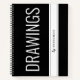 Simple Personalized Notebook for your Drawings with your name printed directly on the front cover with a big, huge large OVERSIZED "DRAWINGS" title in black and white.